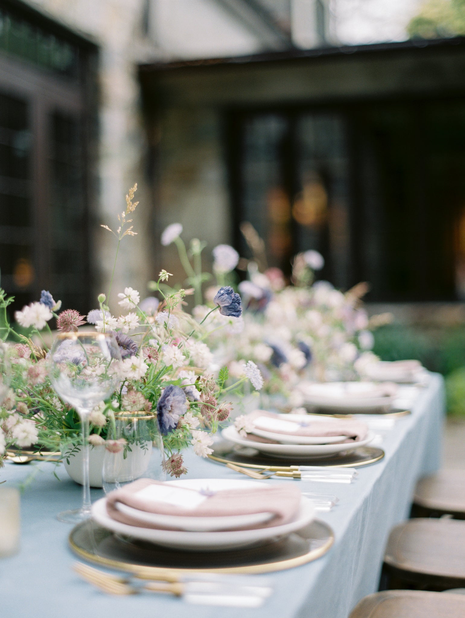 Tabletop: Siren Charger in Fawn, Reactive Dinnerware in White, Prism Flatware in Clear+Gold, Siren White Wine Goblet in Clear+Gold, Siren Champagne Flute in Clear+Gold, Siren Tall Stemless in Clear+Gold, Organic Cotton Napkin in Fawn